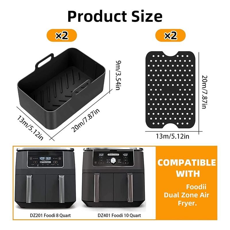 Versatile ApplicationsBaking pan 20 x 13 x 9cm liner20 x 13cm suitable for your 8QT double basket air fryers silicone bowl is not only safe also oven freezer and dishwasher safe It can not only be used as accessories also as a fruit plate