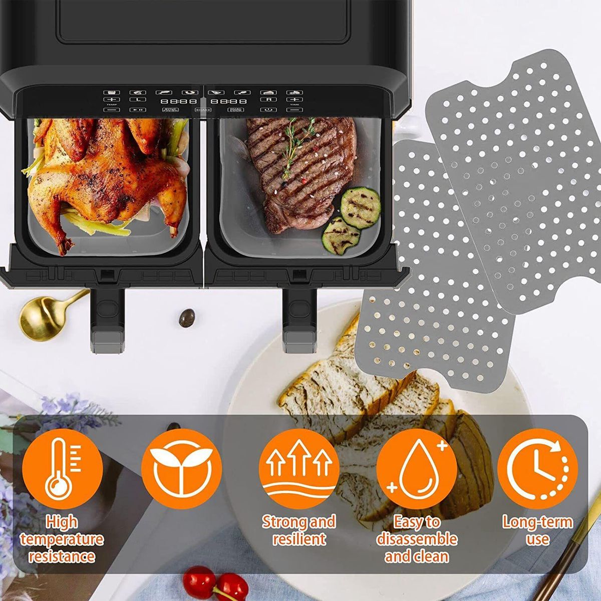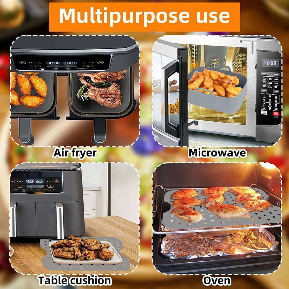 Versatile ApplicationsBaking pan 20 x 13 x 9cm liner20 x 13cm suitable for your 8QT double basket air fryers silicone bowl is not only safe also oven freezer and dishwasher safe It can not only be used as accessories also as a fruit plate