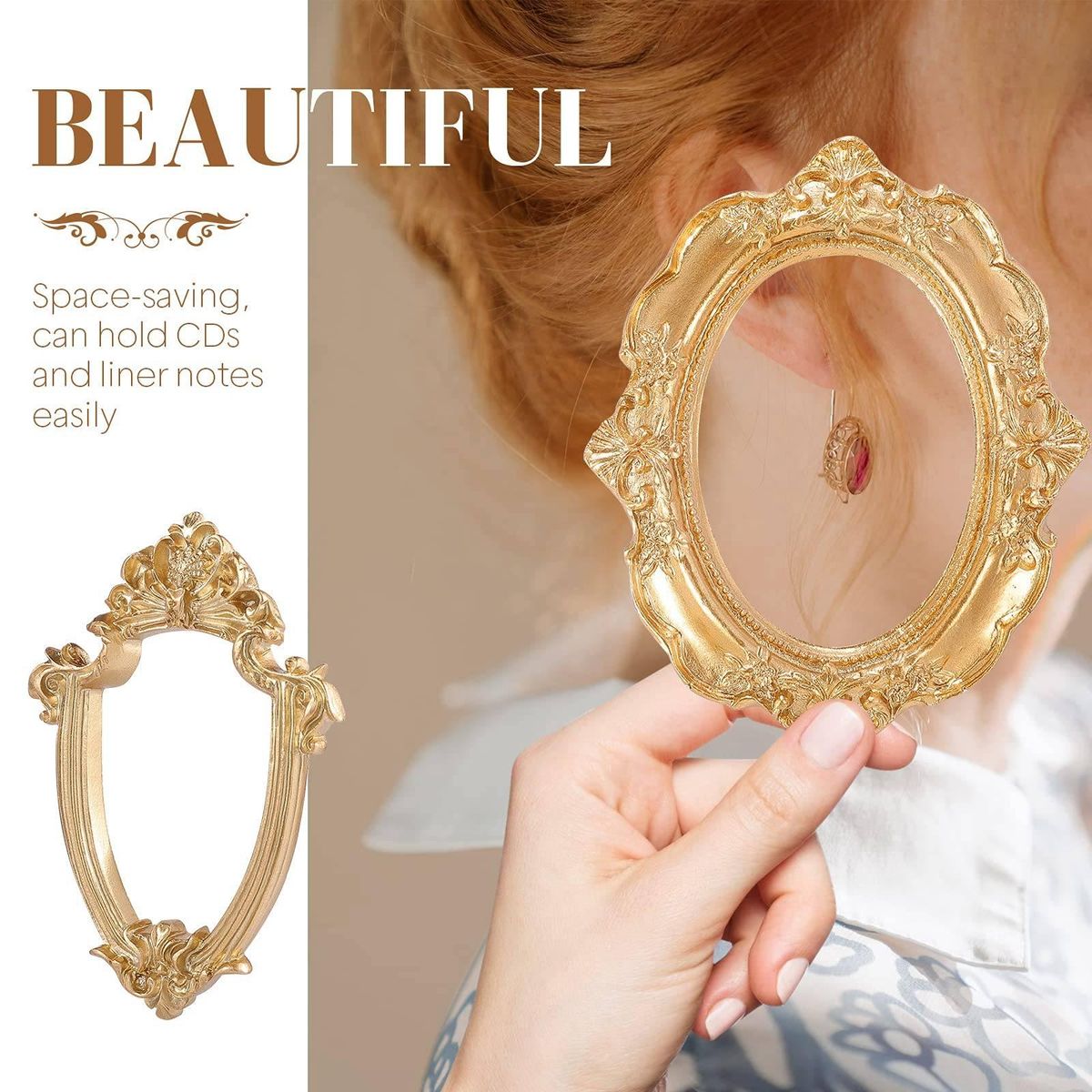 What's included in the package: you will receive 4 pieces vintage picture frames in different shapes and sizes, creative and beautiful with metallic luster and good texture, or DIY your favorite colors to suit your different decorative needs.