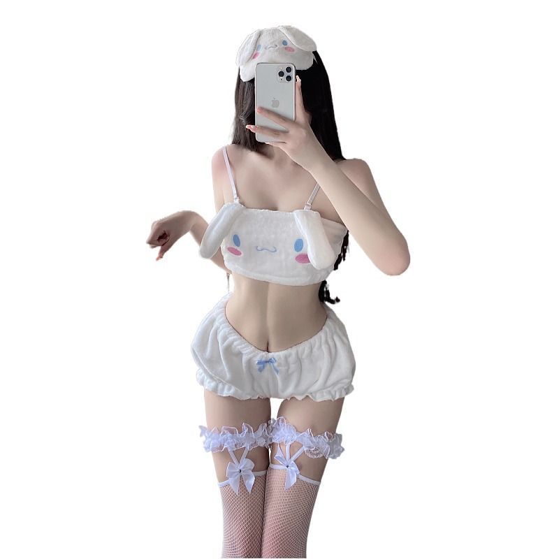 1X Pajamas Flannel Y2k Hello Kitty Cinnamon Dog Three-point Shorts Set Stockings Headband Camisole Top 4 Piece Set