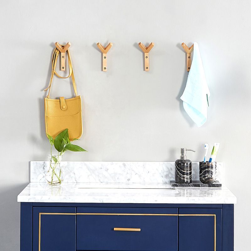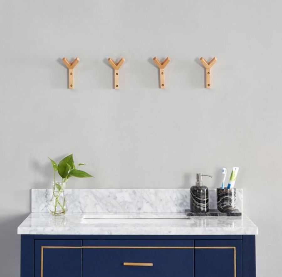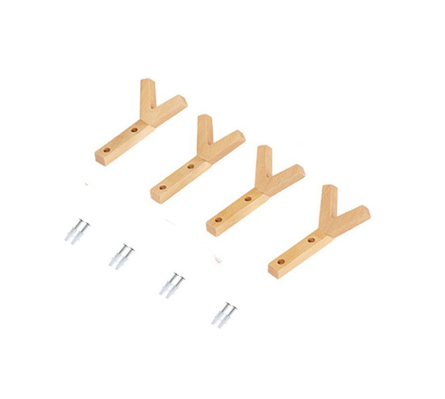 4 Piece Y Shape Natural Wooden Clothes Hooks Wall Mounted Hanger