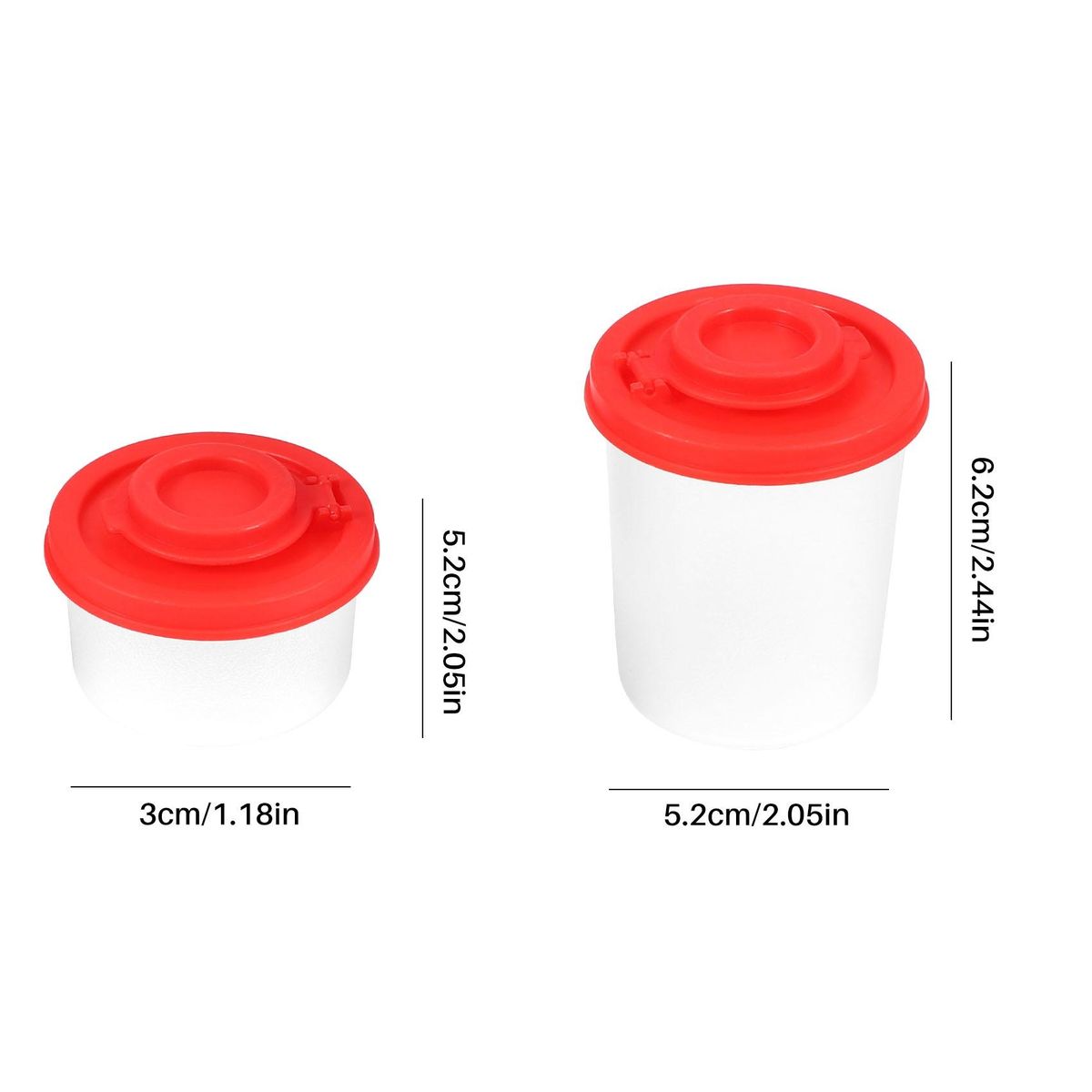 Size description: the clear plastic spice jars with red lids have 2 different sizes, the small one is about 5.2 x 3 cm/ 2.05 x 1.18 inches, and the medium one measures approx. 5.2 x 6.2 cm/ 2.05 x 2.44 inches, lightweight and portable, and will not occupy much space.