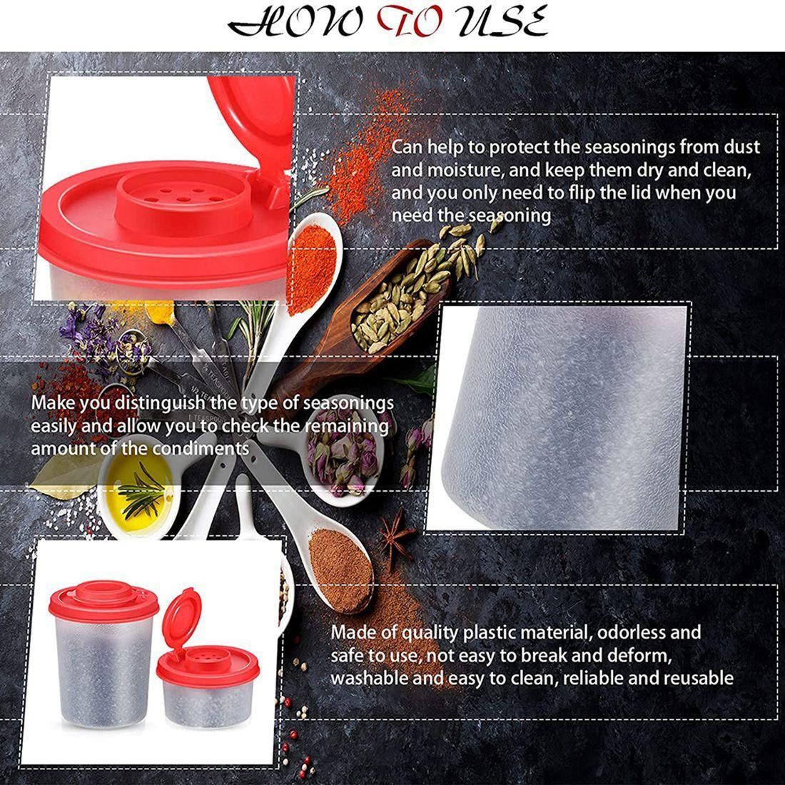 Trustworthy quality: the spice containers with lids are made of quality plastic material, odorless and safe to use, not easy to break and deform, washable and easy to clean, no maintenance required, reliable and reusable, supporting a long time of application.