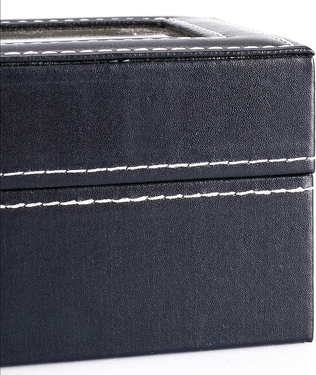 LARGE REAL GLASS LID: Real glass lid protects your watches to the fullest, and offers you an open view of the displayed watches. Box Size: 20 x 11 x 8 cm