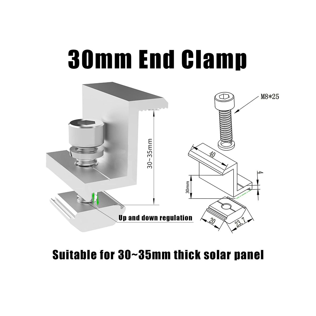 It fits 30-50mm/1.18-1.97inch solar framed panel.
