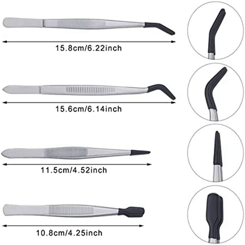 Rubber-coated design: these bent tweezers adopt a rubber-coated retaining tip design, which is not easy to slip or move, giving you a soft grip without scratching or breaking delicate targets, improving the quality and efficiency of your work.