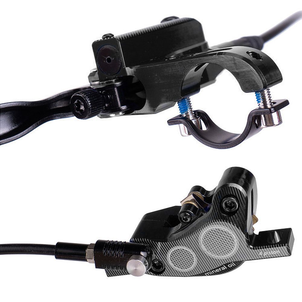 The dual-brake four-piston directly transmits the oil pressure to the brake block to improve the braking efficiency. Even when you are cycling downhill in a high speed, on a muddy road or under rainy, snowy weather, gently pull the brake lever to stop immediately.