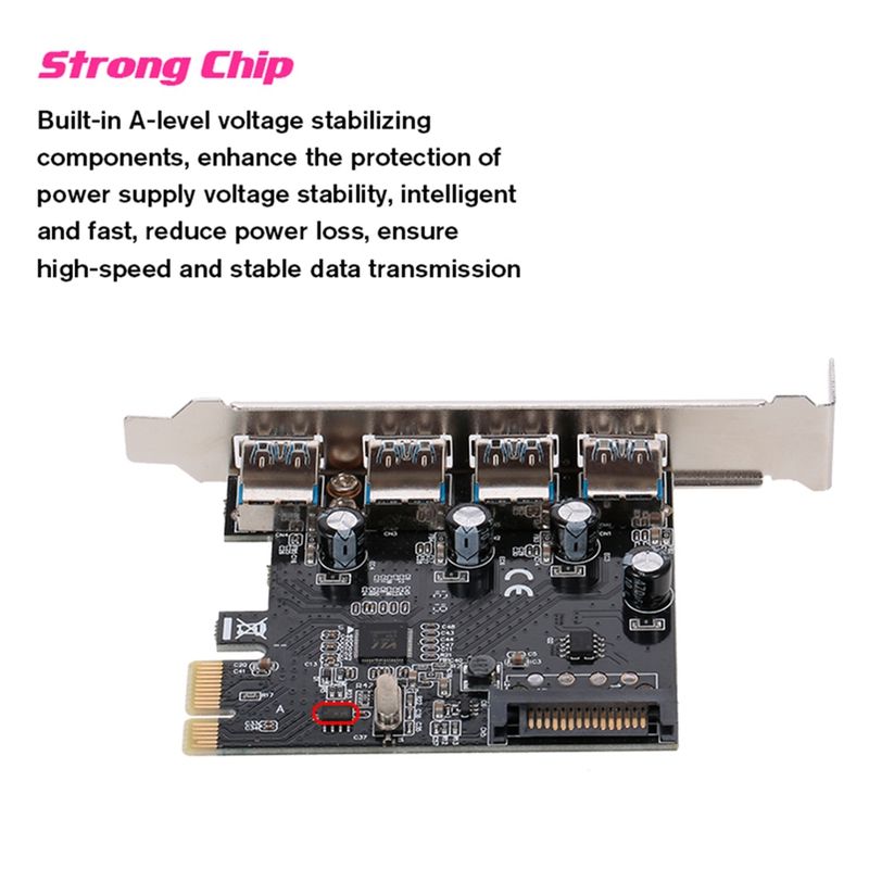 The PCI E card adapter has 4 USB 3.0 ports, which provides you 5Gbps transmission speed.