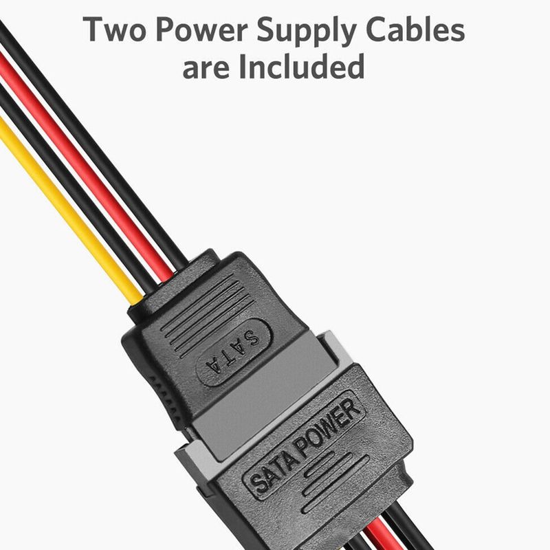 If your PC does not have an available 15-pin SATA free plug, please use the included 15-pin to 2x 15-pin SATA Y cable.