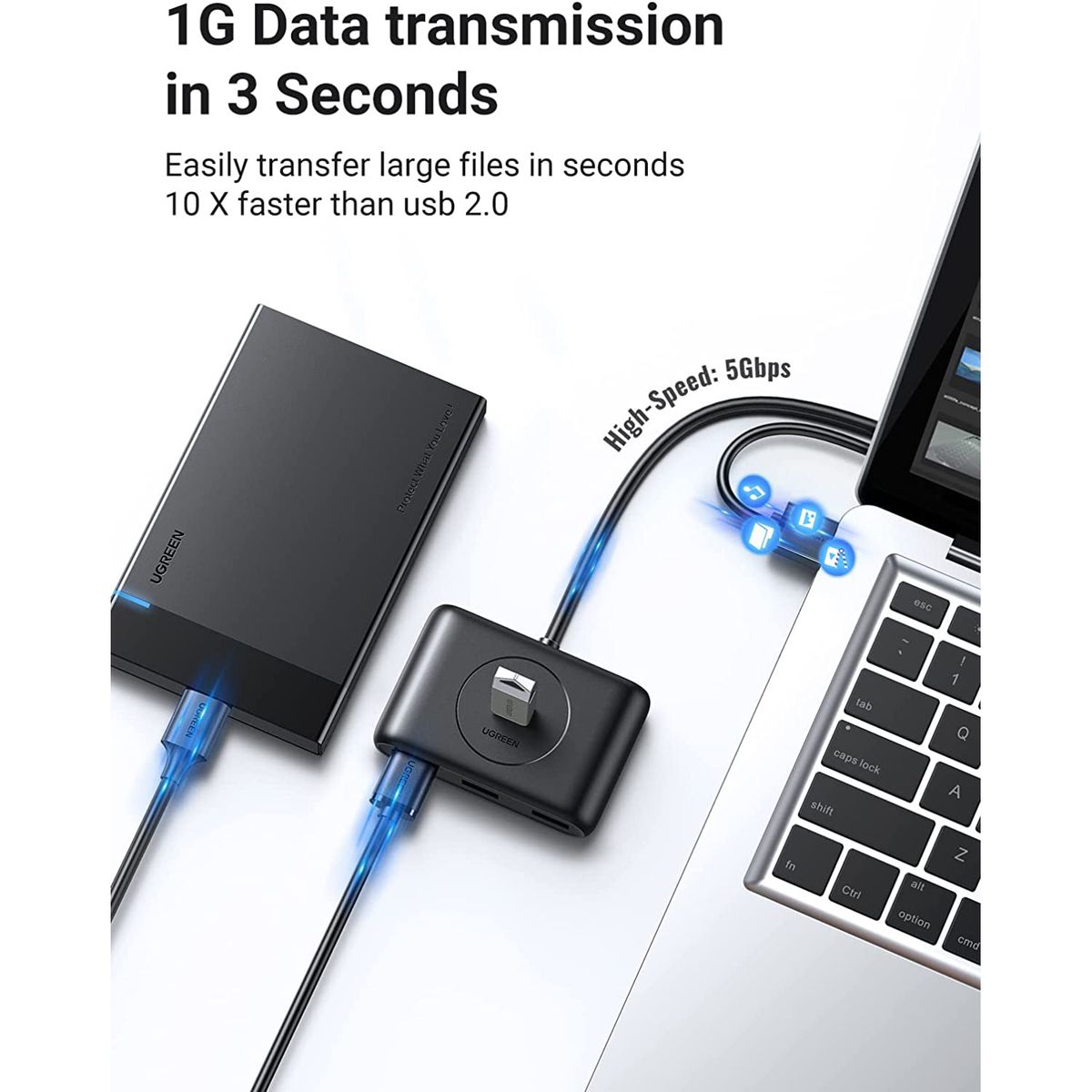 The Ugreen 4 Ports USB 3.0 Hub With Type-C USB 3.1 OTG Adapter features 4 x USB 3.0 ports that allow you to connect up to 4 USB devices to your PC or laptop, a USB-C adapter, 1m cable, and is compatible with Windows, macOS, Linux, and Chrome OS.