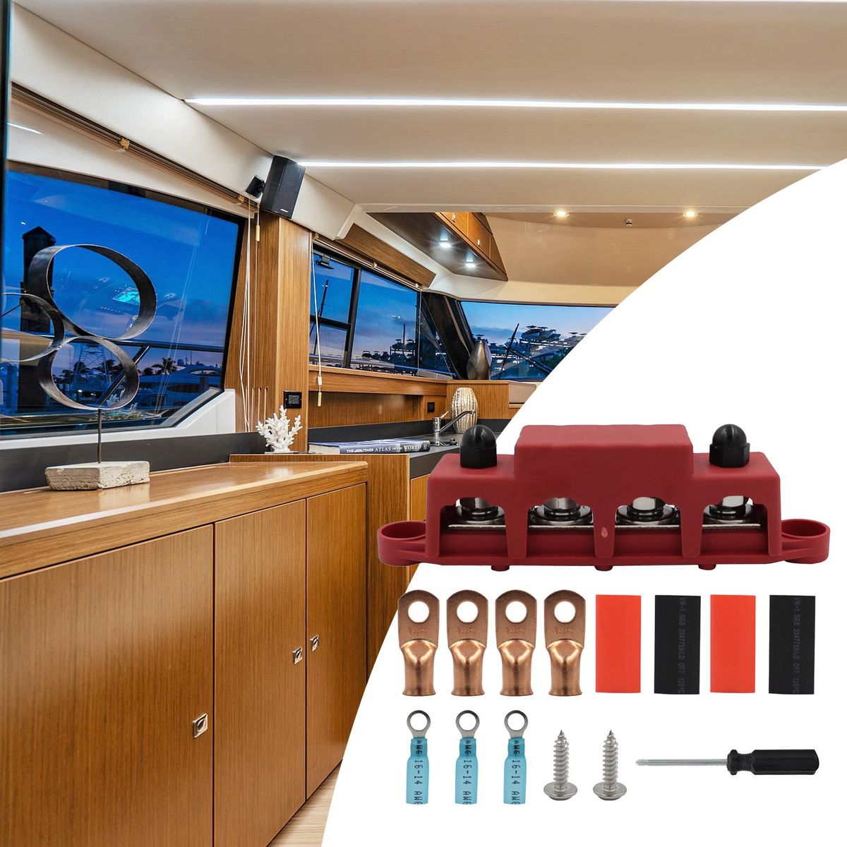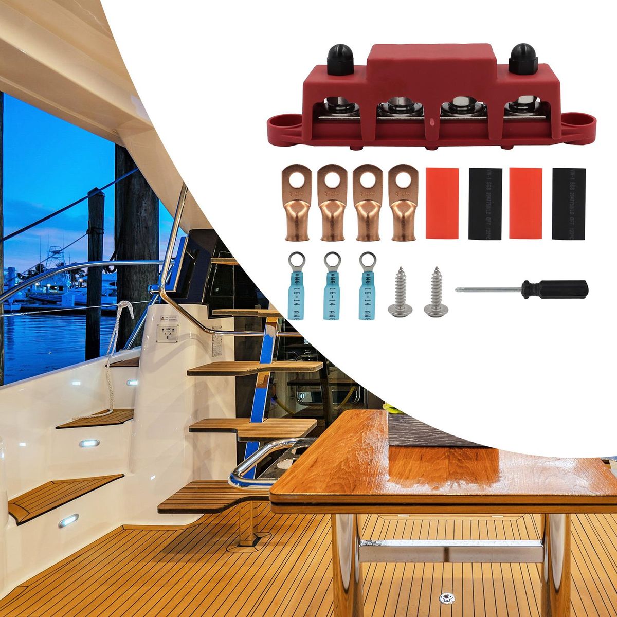 【Easy to Use】4 Post power distribution block bus bar, First insert the wire into the terminal, then open the protective cover, and finally pass the screw through the terminal, and tighten the screw to fix the terminal. The wires will not come loose.