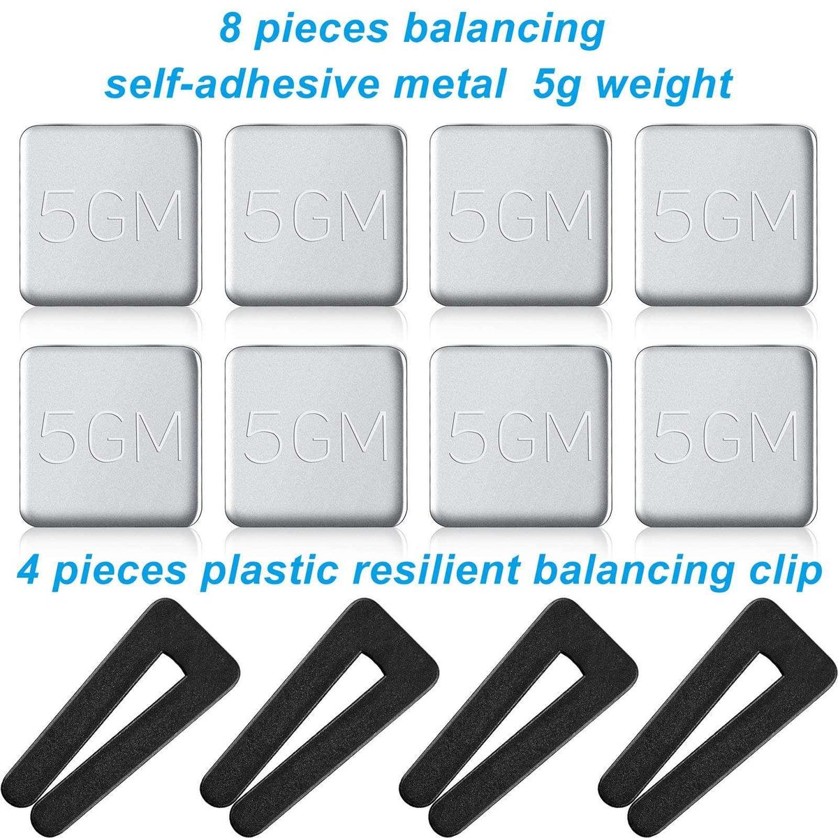 Specific function: the plastic balancing clip makes it easier to locate problem area and self-adhering 5G weights to help correct the wobble, the permanent weights are secured with a very sticky adhesive which not come free