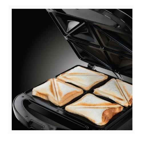 4 Slice sandwich makingCut and seals two rounds of toasted sandwichesNon-stick cooking plates for easy cleaningNon-slip feetAutomatic temperature controlCool touch housingPower - 1400 watts