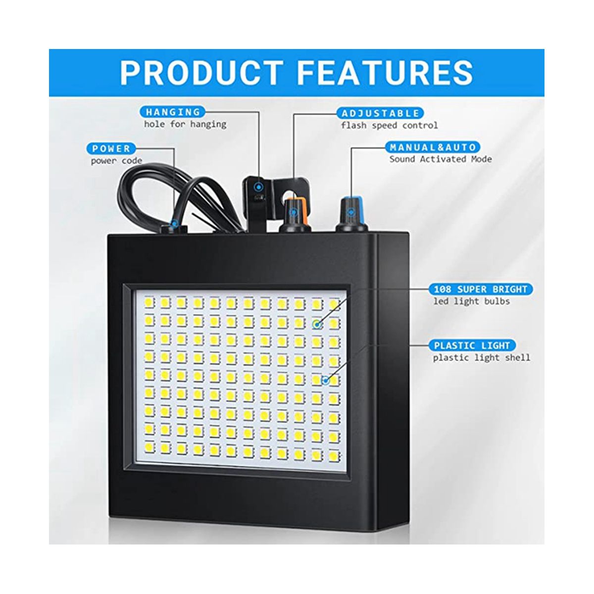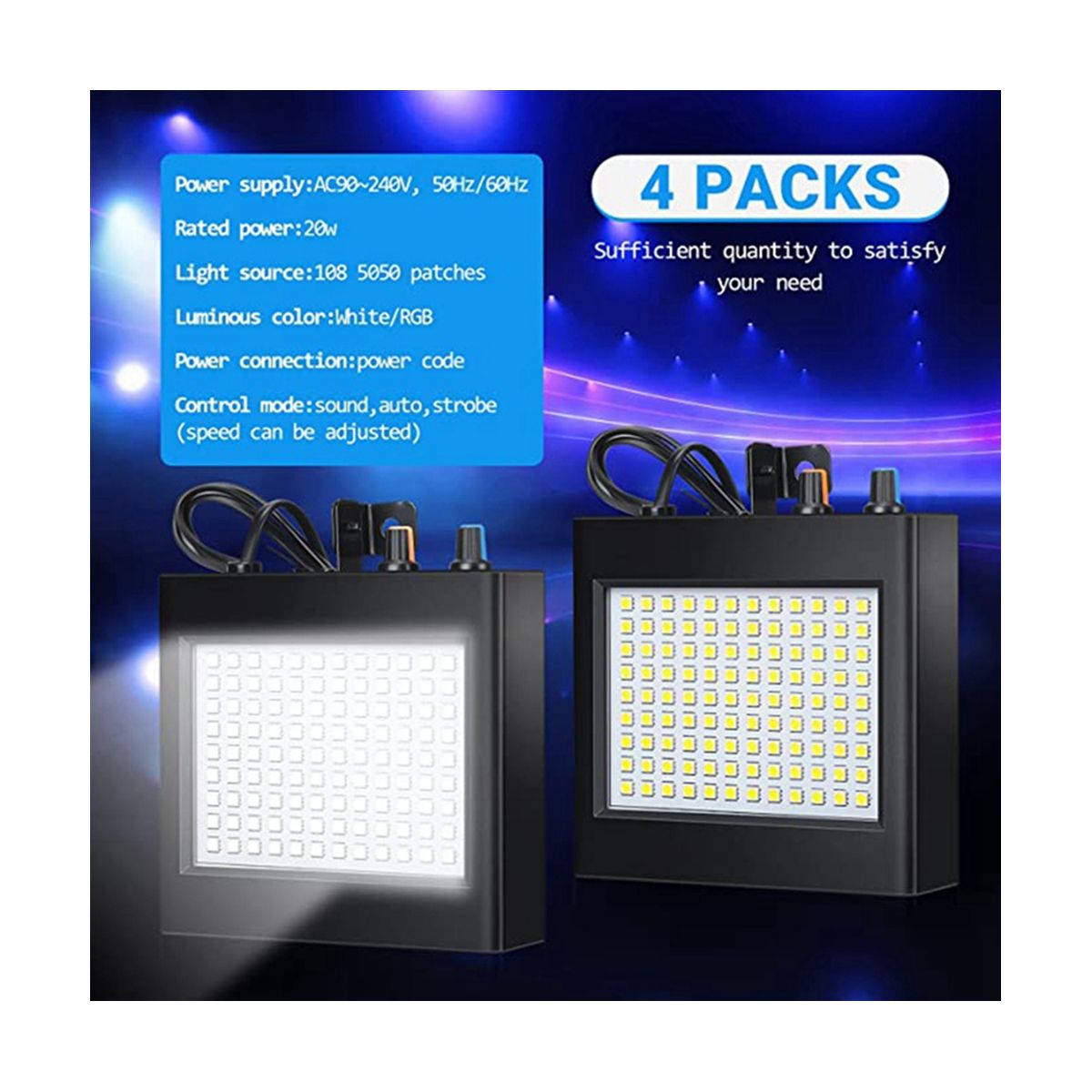 2 Control Modes: our LED strobe lights feature 2 different control modes, including sound activated mode and manual mode, and it can change the lighting according to stage music, applause, cheers and more