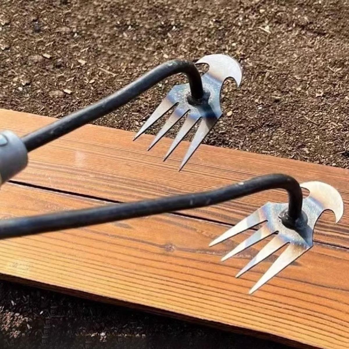 The four-tine weeder is made of high-quality manganese steel, ensuring sharpness, wear-resistance, and durability. its polished surface prevents stickiness and provides high impact resistance and tensile strength. precision forging makes it strong and long-lasting.
