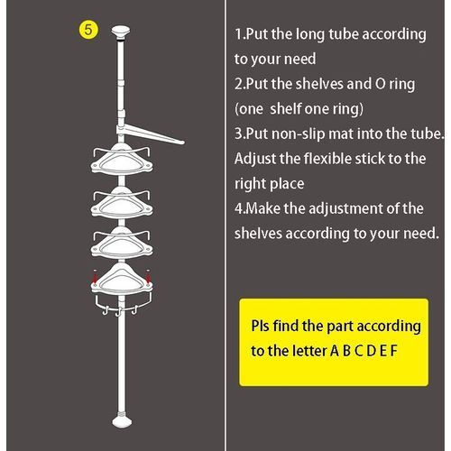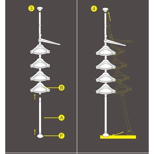 Create space in your kitchen and bathrooms with this Corner Shelf, made from lost lasting materials like ABS plastics and Stainless steel, its comes with four perforated trays each having a capacity of holding up to 3kg weight of load. It's the ideal rack for bathrooms, because it is uniquely designed to occupy no floor space and this makes maintaining the cleanliness of the floor easy. Also comes with extra three hooks for hanging items, and guard bars to prevent items from falling off the tray.