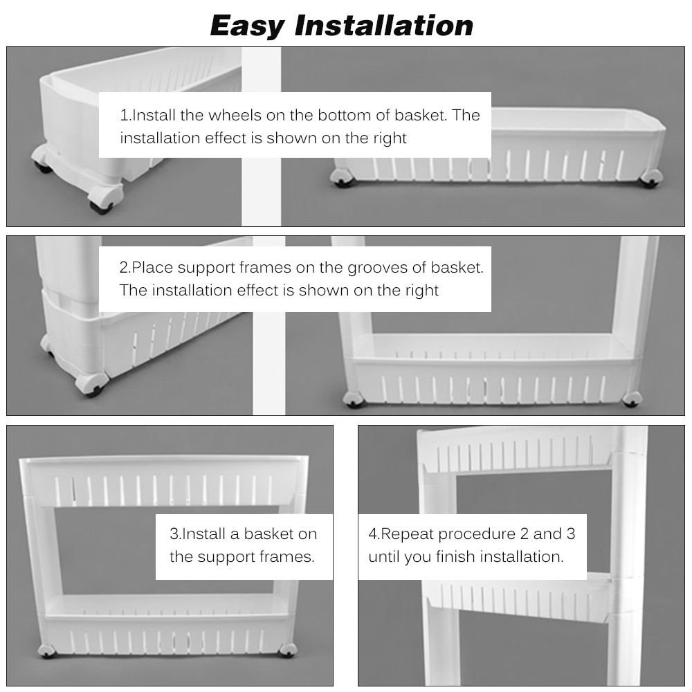 Compact amp; Space-saving: adopting four layers and slim design, the shelf even can be used in the gap. Make full use of your space!