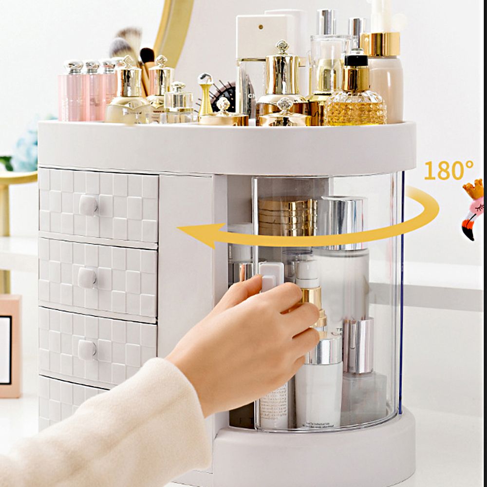 Innovative Design: With the specially-designed revolving door, the makeup organizer is good at proofing dust.