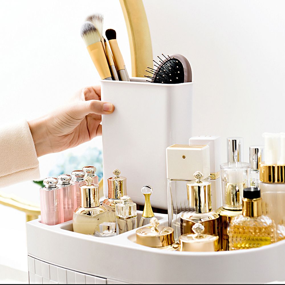 A Combination of Pretty looking and Multi-function: With this awesome organizer, you won\'t be troubled by messy cosmetics scattered on your vanity table anymore.