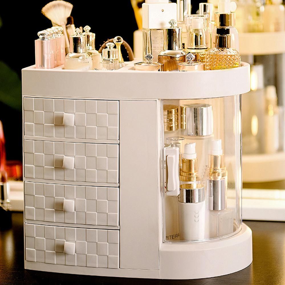 Buy 4 Tiers Acrylic Multifunctional Storage Rack Ivory White Makeup Organizer Rotation Dustproof Shelf 4st Layers Cosmetics Storage in Nigeria