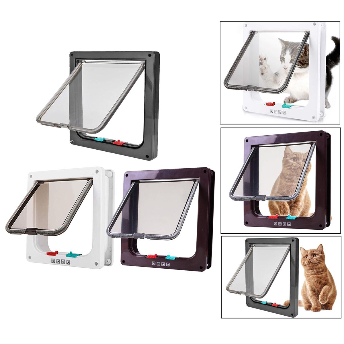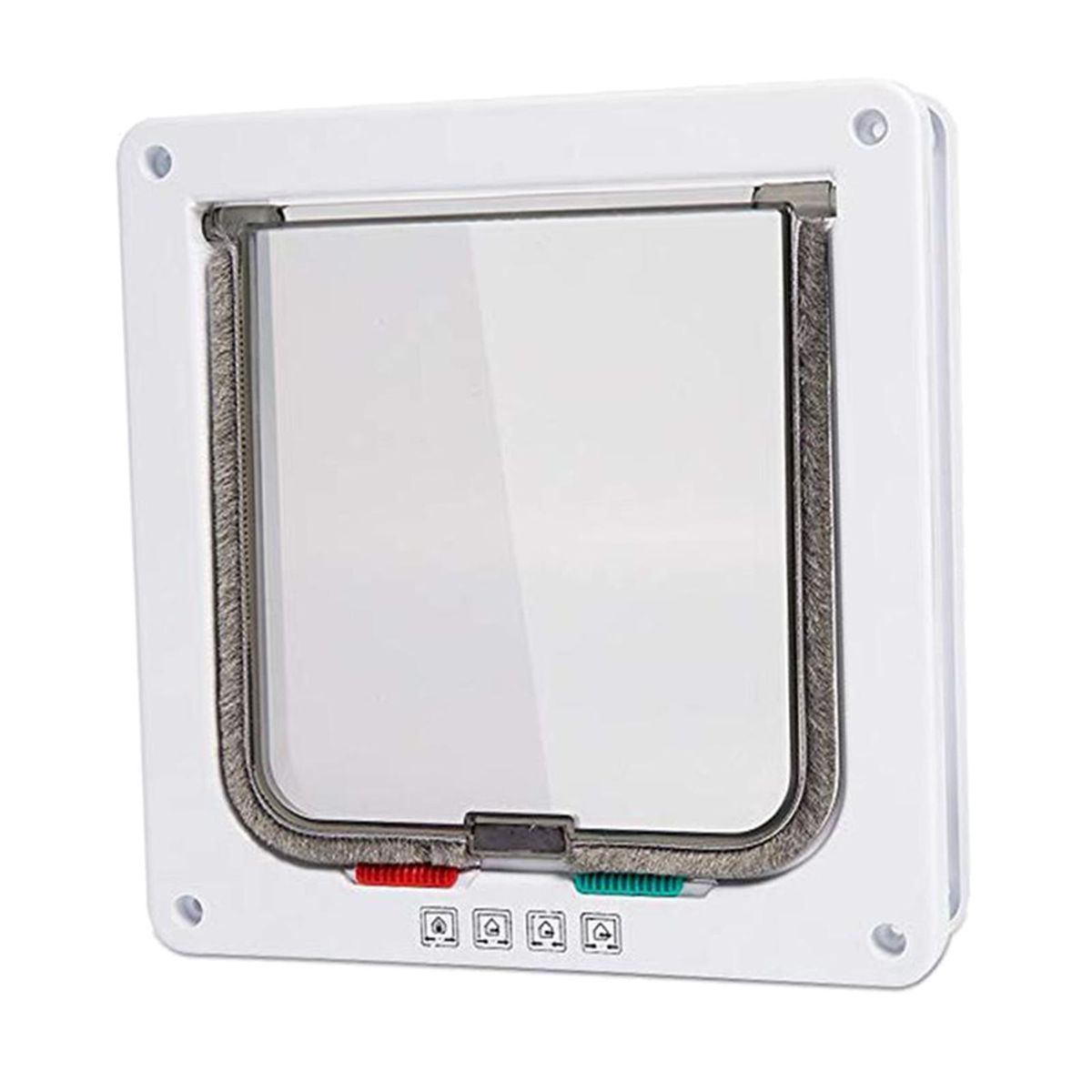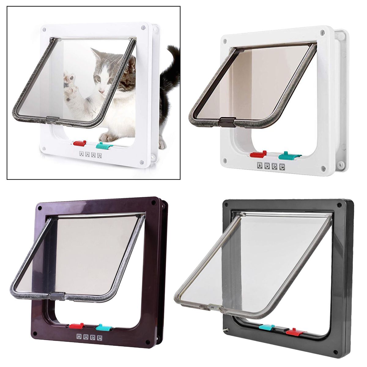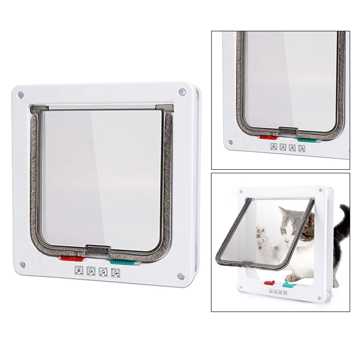 Give your cat the freedom to come and go as he or she pleases with this cat flap that has a 4 way locking system.Slide the locks on the bottom of the flap to set the door to one of the following: Locked from both sides;Cats can only enter from the outside but not go out again;Cats can go out but can not get back in (for preventing other cats also entering);Completely open and cat can come and go at its will.Made of the plastic material, easy to install, simple to operate.