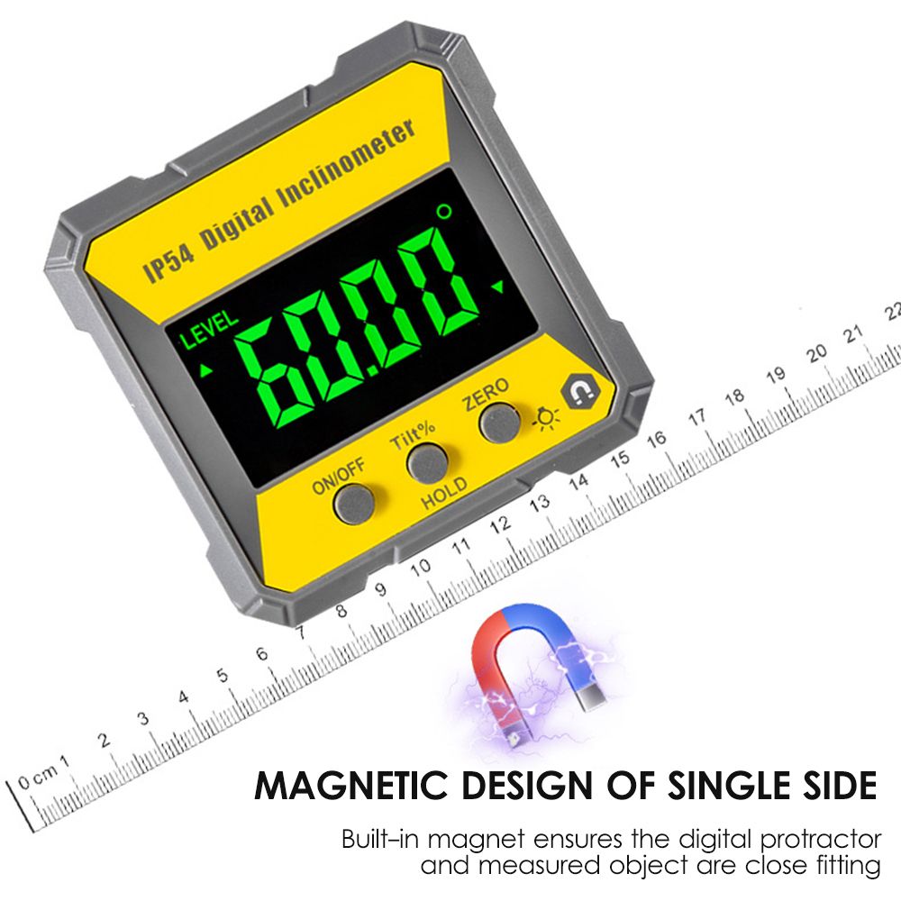 Built-in magnet ensures the digital protractor and measured object are close fitting. Mini size, lightweight and portable. IP54 waterproof and dustproof.
