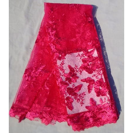 Embroidery Lace Fabric With Sequin - Purple - 2.5 Yards