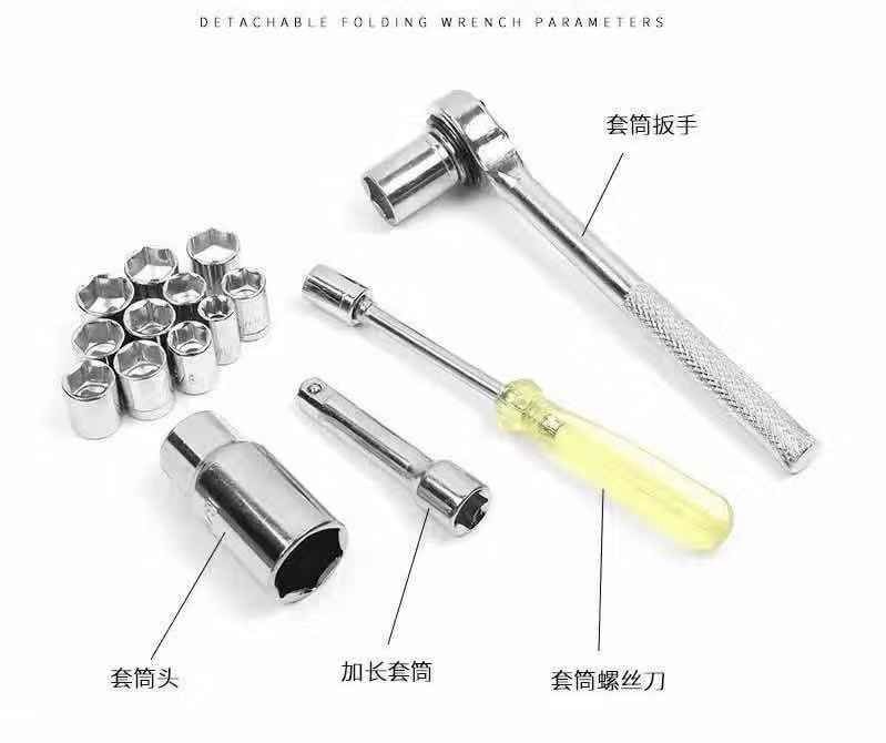 This box Includes 1 pc 3/8" reversible ratchet handle, 14 pcs 1/4" Dr.Metric sockets , 14pcs 1/4" Dr.SAE Socket, 3pcs 1/4" Dr.SAE Socket (8pt) 1/4", 5/16", 3/8" , 1pc 3/8" Dr.x3"ext.bar, 1pc 1/4" 3/8" adaptor , 1pc 3/8" Dr.x21MM Spark Plug Socket, 1pc 6" Spinner Handle , 2pc 3/8 Dr.Metric Socket 15mm/16mm, 1pc Blow Case. Suitable for motorcycle, bicycle maintenance, suitable for all kinds of screws, nuts, Suitable for car dismantling throttle, seat chair, door lock. It is suitable for car dismantling valve, seat chair, door lock and fender. Can be use for vehicle maintenance and repair tools. Contains all the Products as Per routine home needs