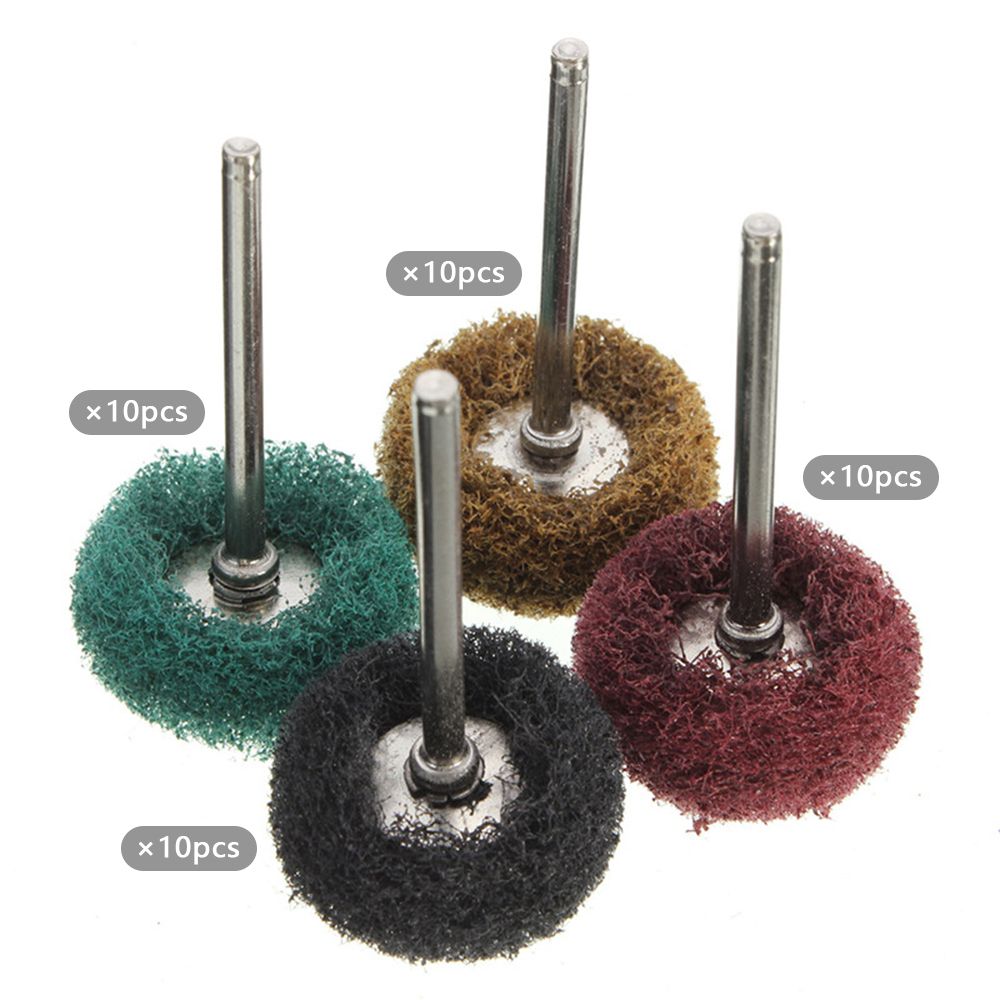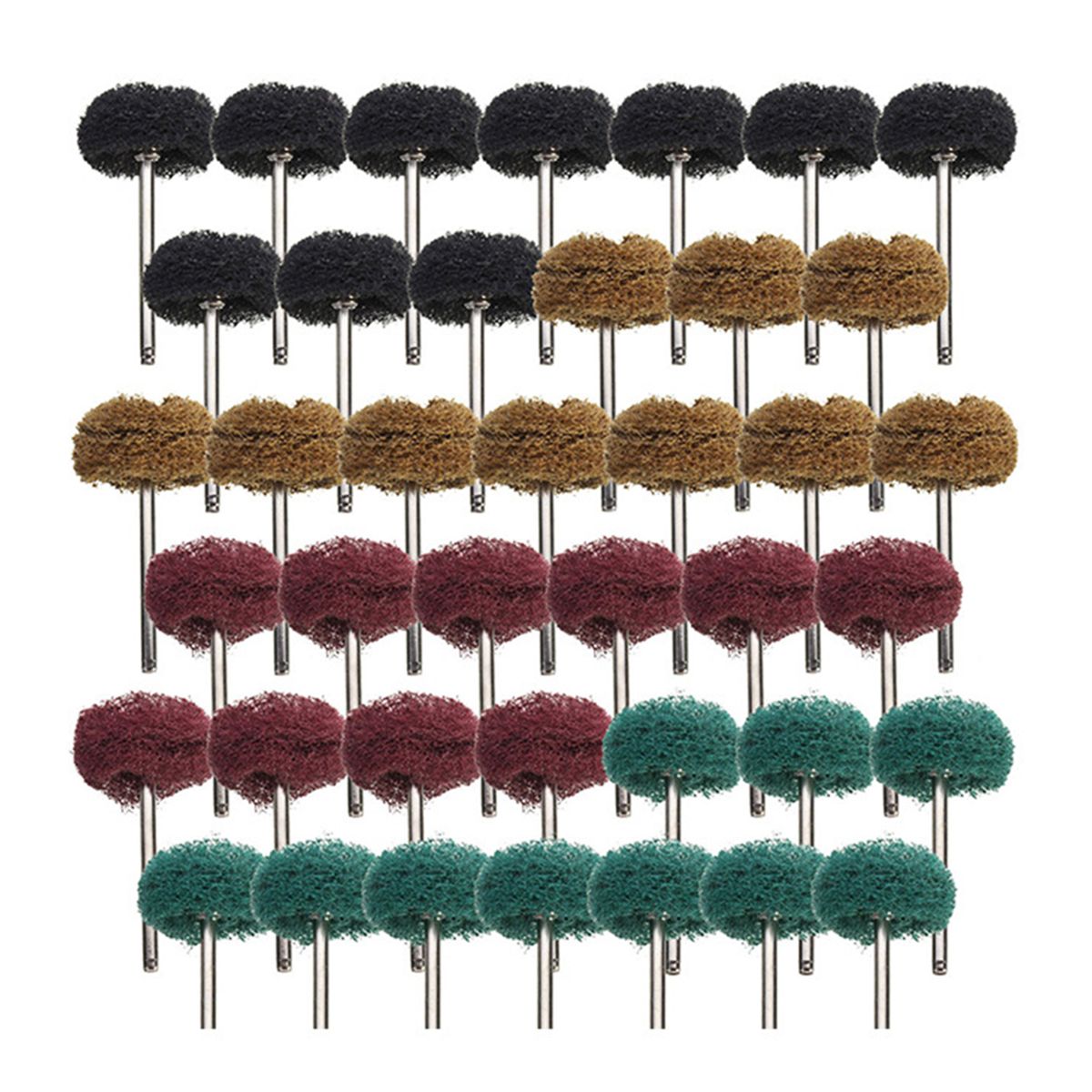 Large Package: There are 40pcs buffing polishing wheels: 4 colors (Brown/ Green/ Red/ Black) can be supplied for you, and 10pcs in each color.