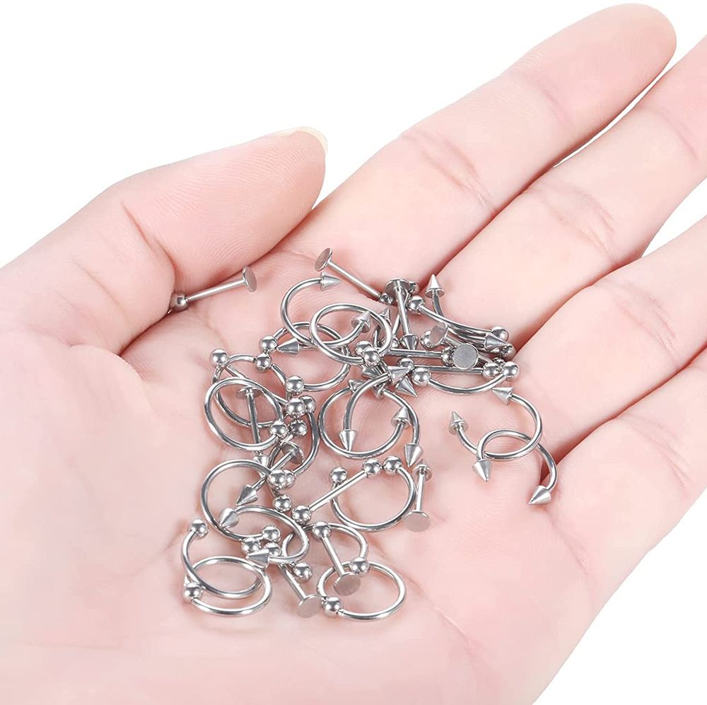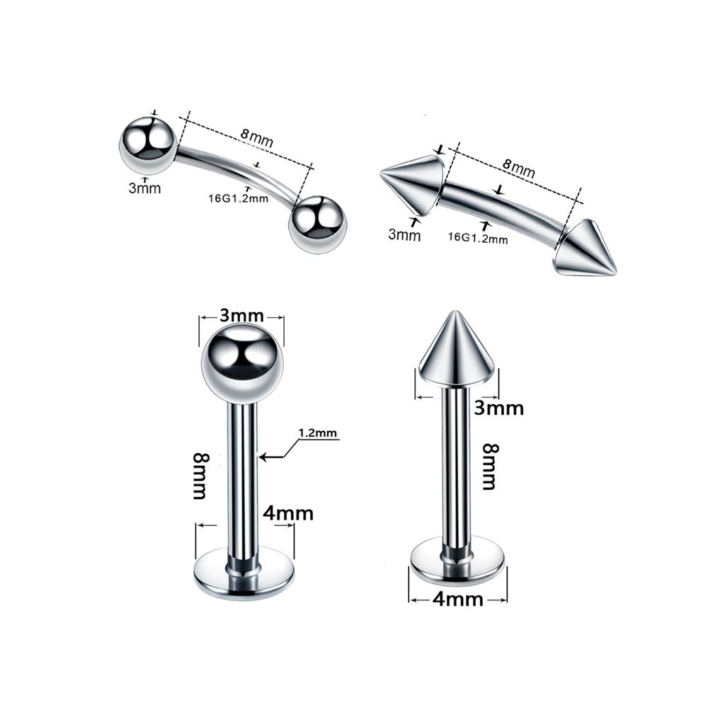 One package includes various piercing jewelry for ear piercing, tragus-piercing, nose piercing, tongue piercing, eyebrow piercing and so on. Save your money and worth to worn, meet your different needs about piercing jewelry and have a full of fashion every day.