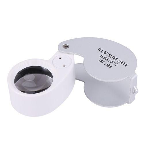 SODIAL(R) 40 X 25mm Glass Lens Jeweler Loupe Magnifier With LED-Silver