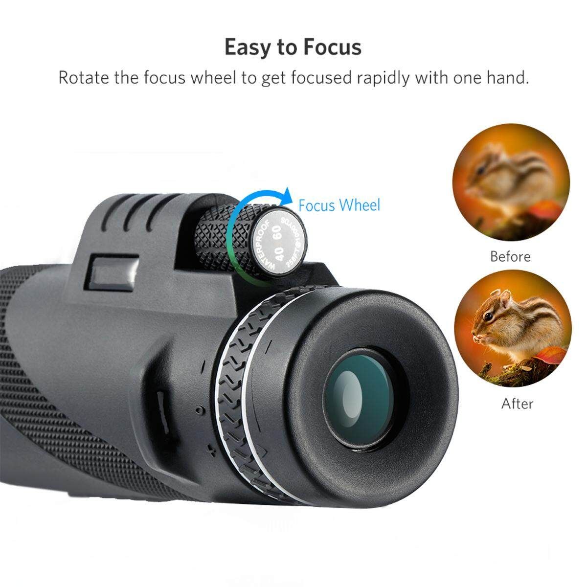 Specsification: 40x Field of view 1500m / 9500m Field of view 7 degrees Prism system Roof Eye lens diameter 16mm / 0.63inch Objective lens diameter 60mm / 2.36inch size 144 x 80mm / 5.67x 3.15inch Lens material FMC green film Black Weight 343g