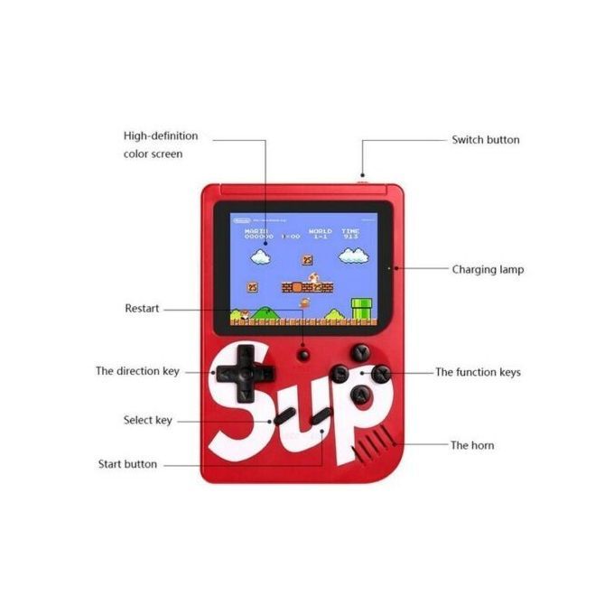 Accessories:1xgame player1xgamepad1x 800Ah lithium-ion battery1xAV cable1x charge cableParameter:Screen:3.0 inch LCD color screenGame:built-in 400 gamesSupport two people playSupport tv connectionLanguage:English\Chinese