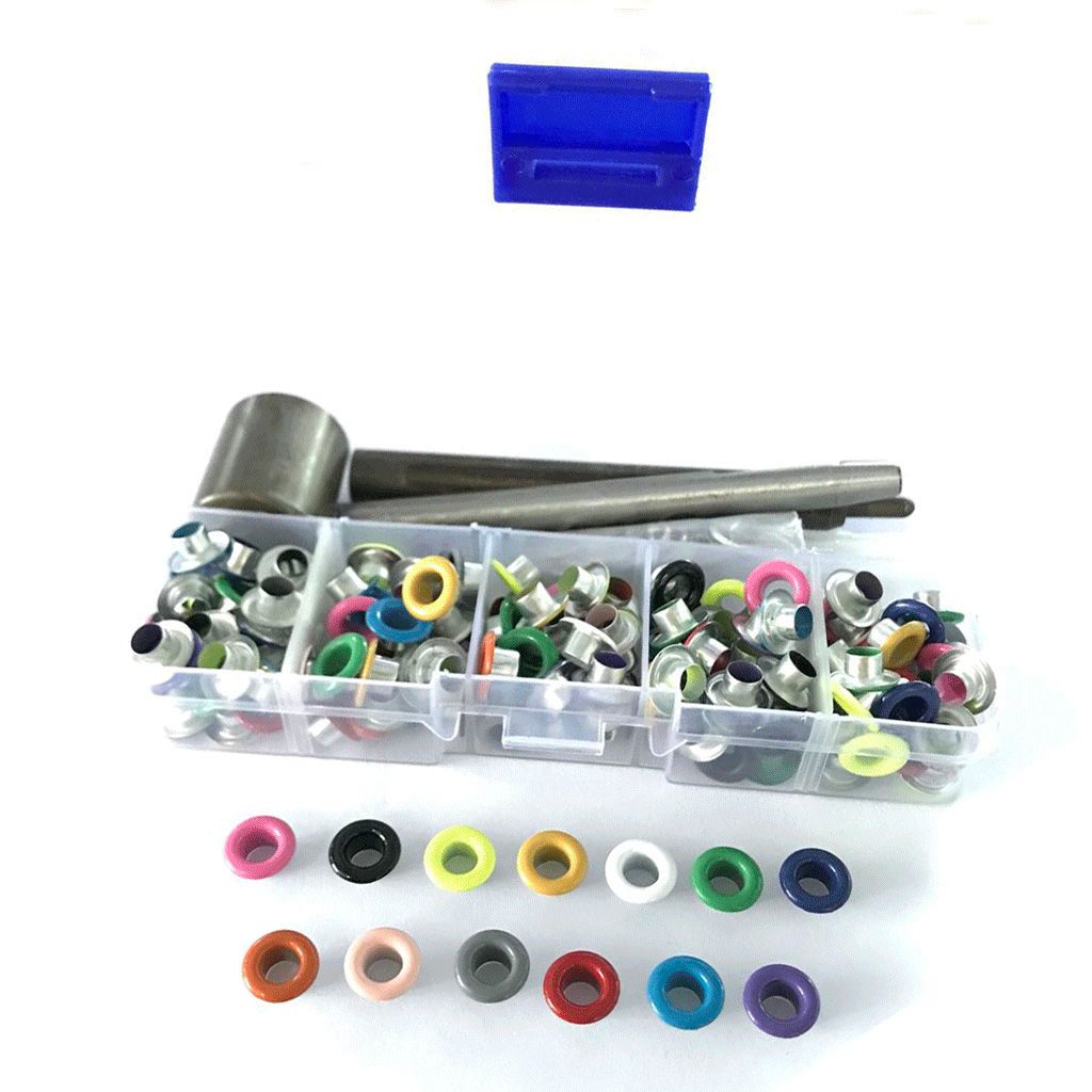 Metal grommets eyelets, includes installation tools, easy to use.Can be used in luggage, clothing, outdoor supplies and other fields.Good gadget suitable for DIY crafts, leather craft repair, clothing, shoes, bags, belt accessories, ect.Made of high quality iron, durable and practical.Come with a storage case, convenient to carry and storage.