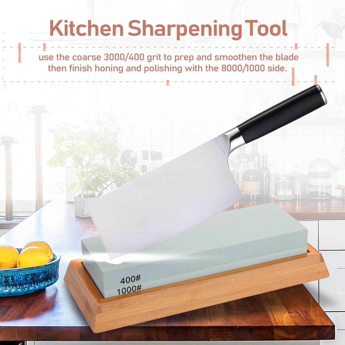 This complete cutter sharpening kit comes with double sided (400/1000 3000/8000) premium quality whetstone, anti-slip base for holding the stone, and cutter sharpening angle guide.