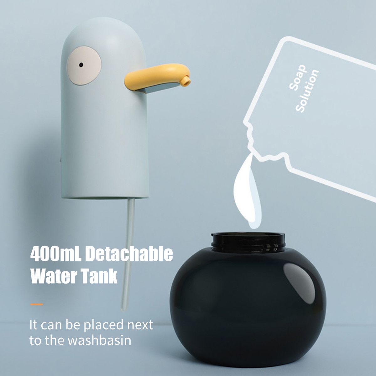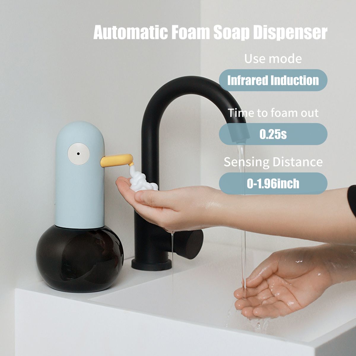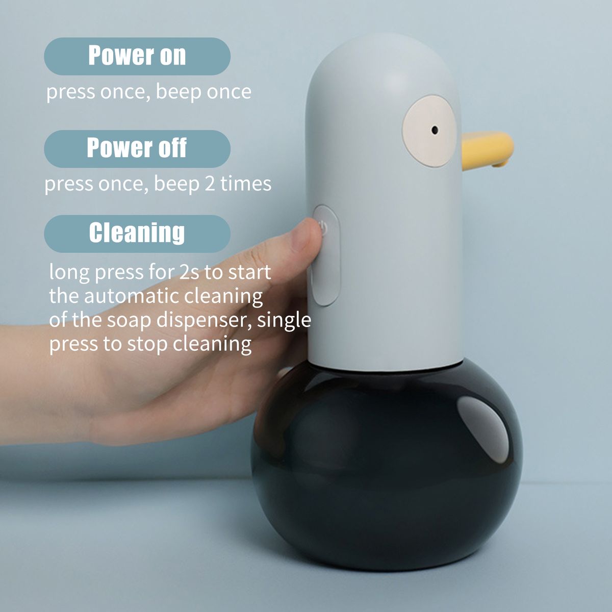 [Duck Shaped]Hands-free foam soap dispensers with cute duck-shaped attract children and encourage children to wash their hands regularly.