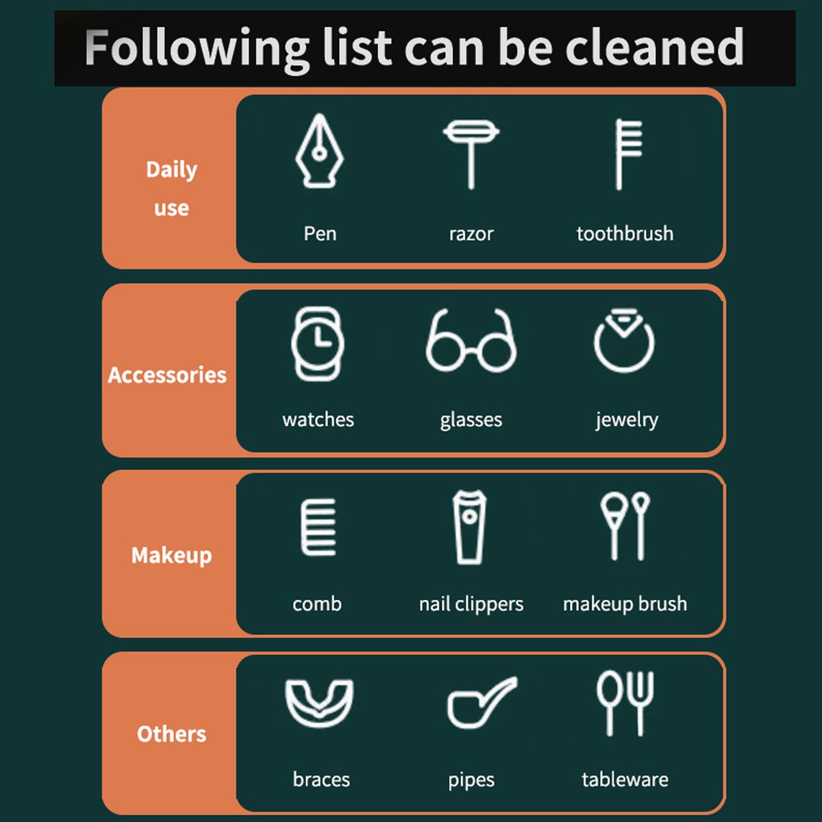 Suitable for cleaning jewelry, eyeglasses, makeup brush, watch band, manual , head, etc.