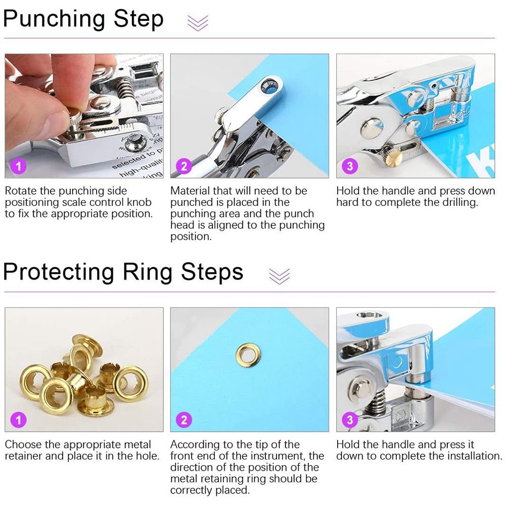 With The Hole Punch Eyelet Plier Kit: The Hole Punch Eyelet Plier is made of heavy-duty carbon steel, with adjustable inset guide, die-cast zinc jaws, tool steel mandrel, dependable & strong.The clamp plier tools can press eyelets into many materials such as fabric, leather, belts, plastic, acrylic, canvas, suede, paper, cardstock.