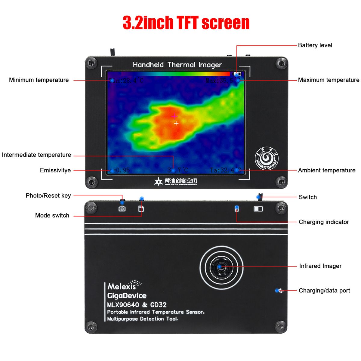 3.2 Inch Display: This thermal imager adopts a 3.2inch display screen to display and track maximum temperature, minimum temperature, and center point temperature.