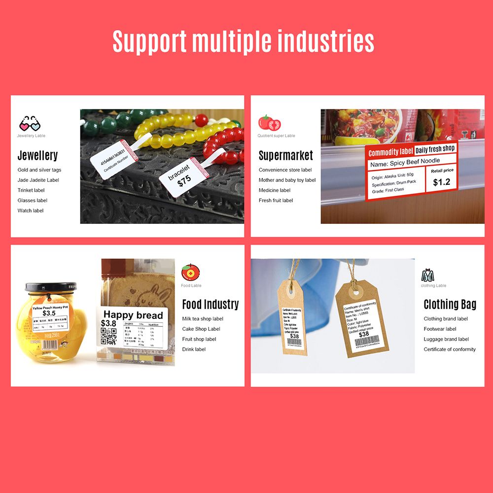 Various blank label paper with different sizes, and suitable for B21 label printer which can be widely used in home, office, supermarket, clothing shop, catering, etc.