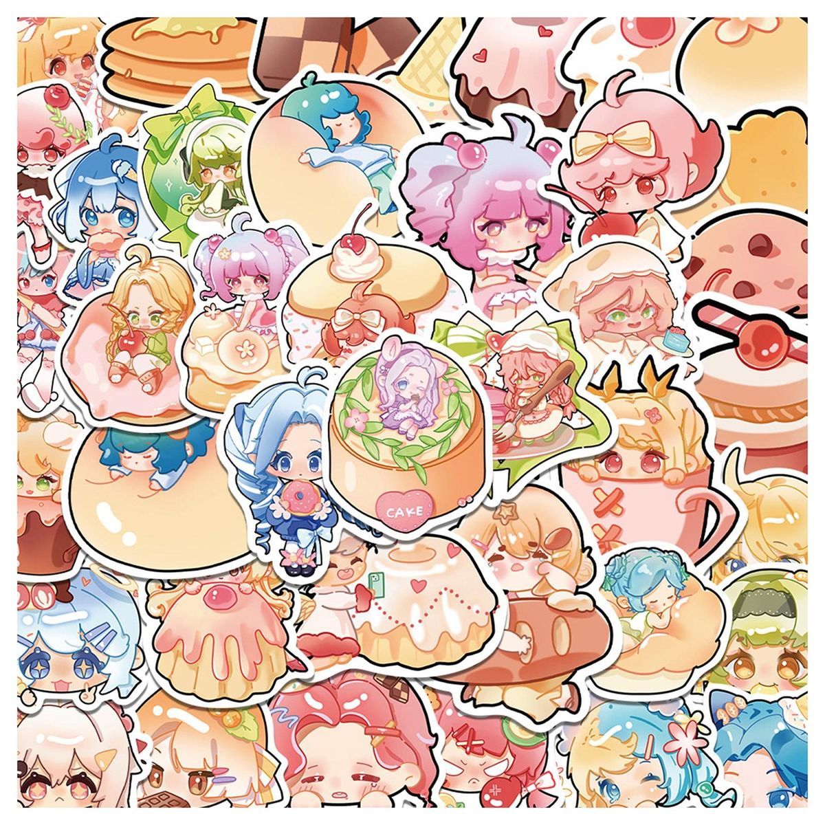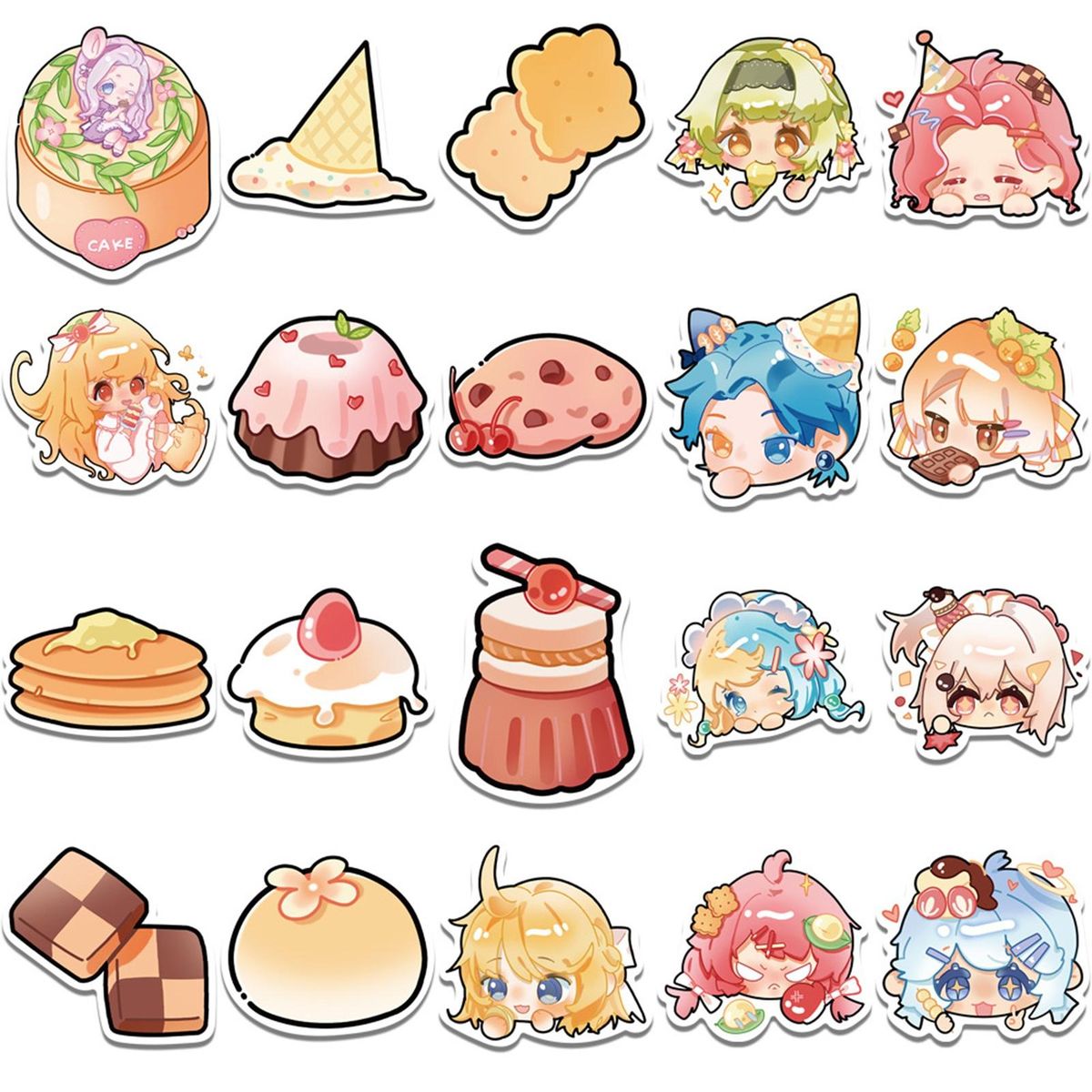 Graffiti stickers with various anime dessert cake patterns, such as ice cream, strawberry cake, bread, etc., to meet your various sticking needs, you can use your imagination to create DIY decoration with these vinyl stickers in different patterns and styles, add fun to your own life.