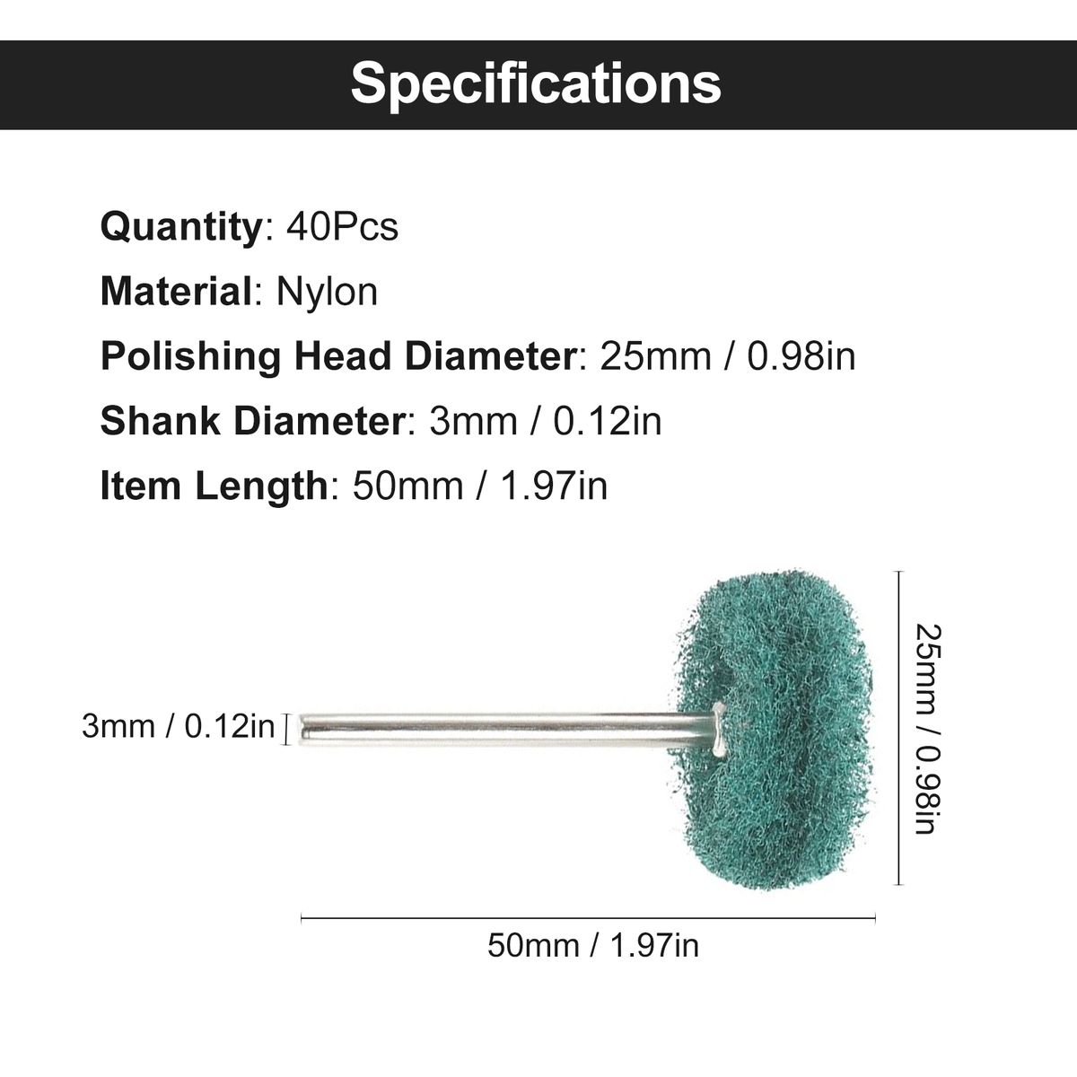 Polishing Head Diameter: 25mm / 0.98in
