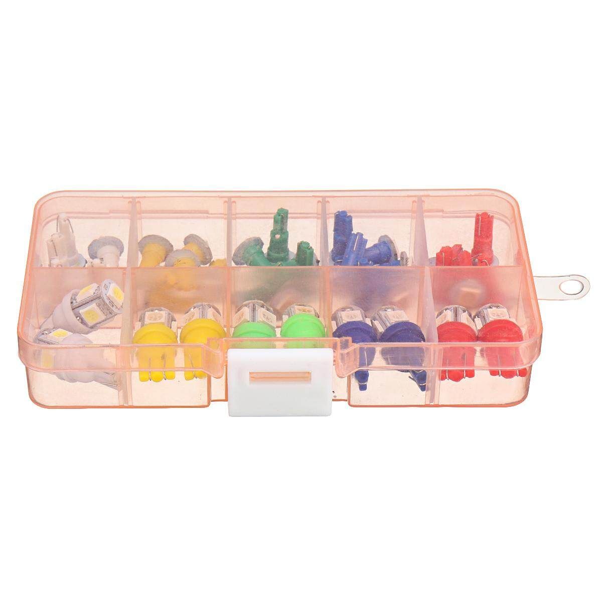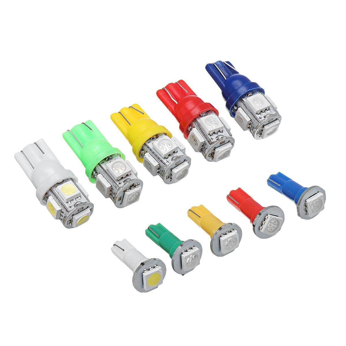 1 x Instrument panel light: T5 6 x T5 Green Instrument panel light 6 x T5 Red Instrument panel light 6 x T5 Blue Instrument panel light 6 x T5 Yellow Instrument panel light 6 x T5 white Instrument panel light T10 2 X T10 Green LED Bulbs 2 X T10 Red LED Bulbs 2 X T10 Blue LED Bulbs 2 X T10 Yellow LED Bulbs 2 X T10 white LED Bulbs