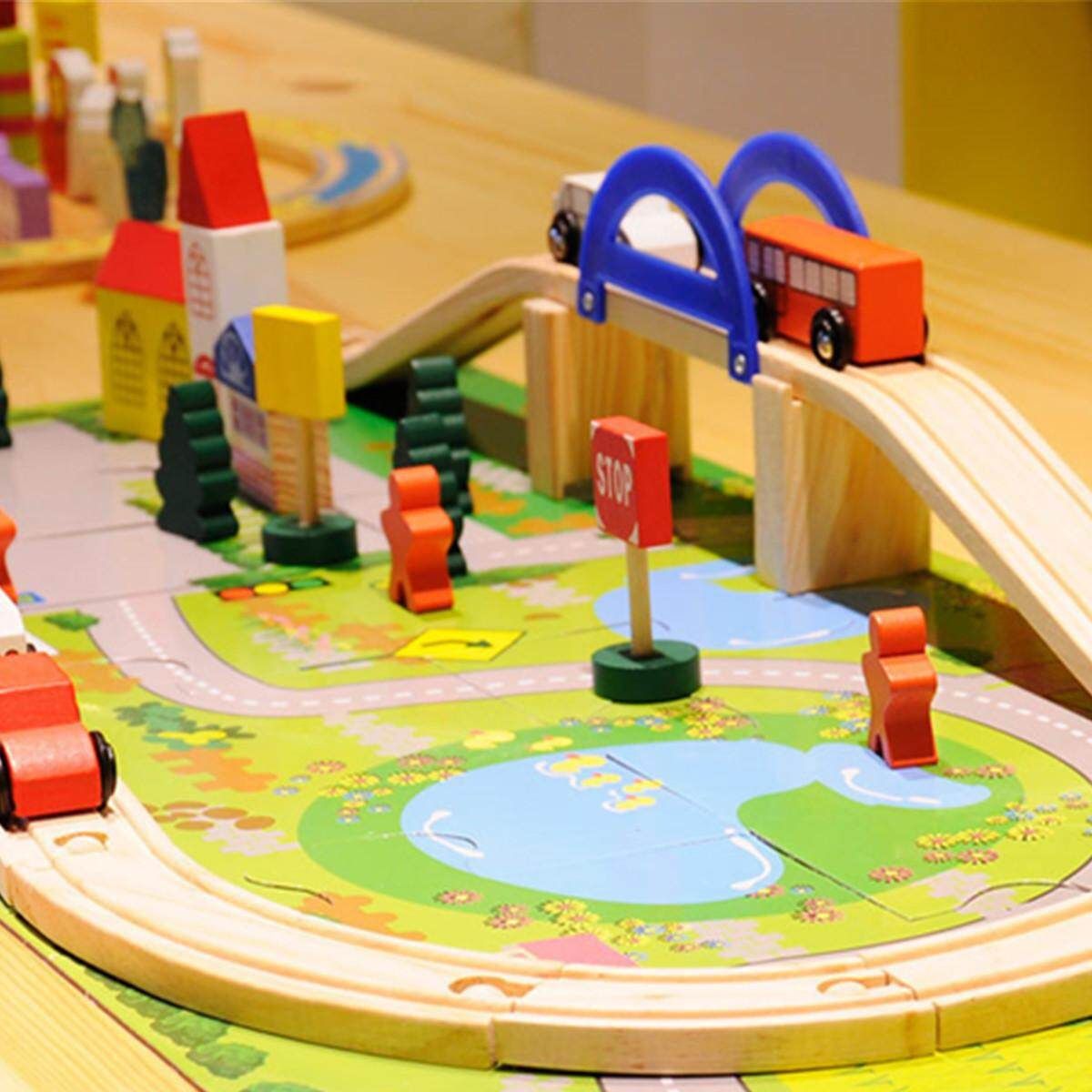 40pcs accessories:10 section bridge, 2 piers, 2 traffic signs, 4 cars, 3 people, 5 trees, 6 house blocks and 8 pavement puzzles