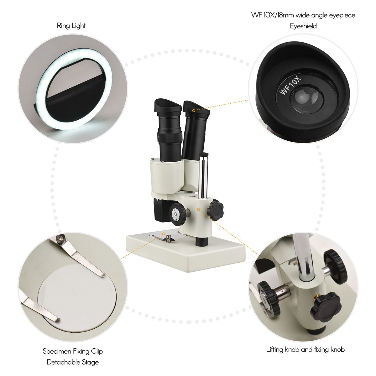 [40X High Magnification] WF 10X/18mm wide angle eyepiece, equipped with a fill light and 2 eyepiece eyeshields, the images observed are of high brightness and clarity.