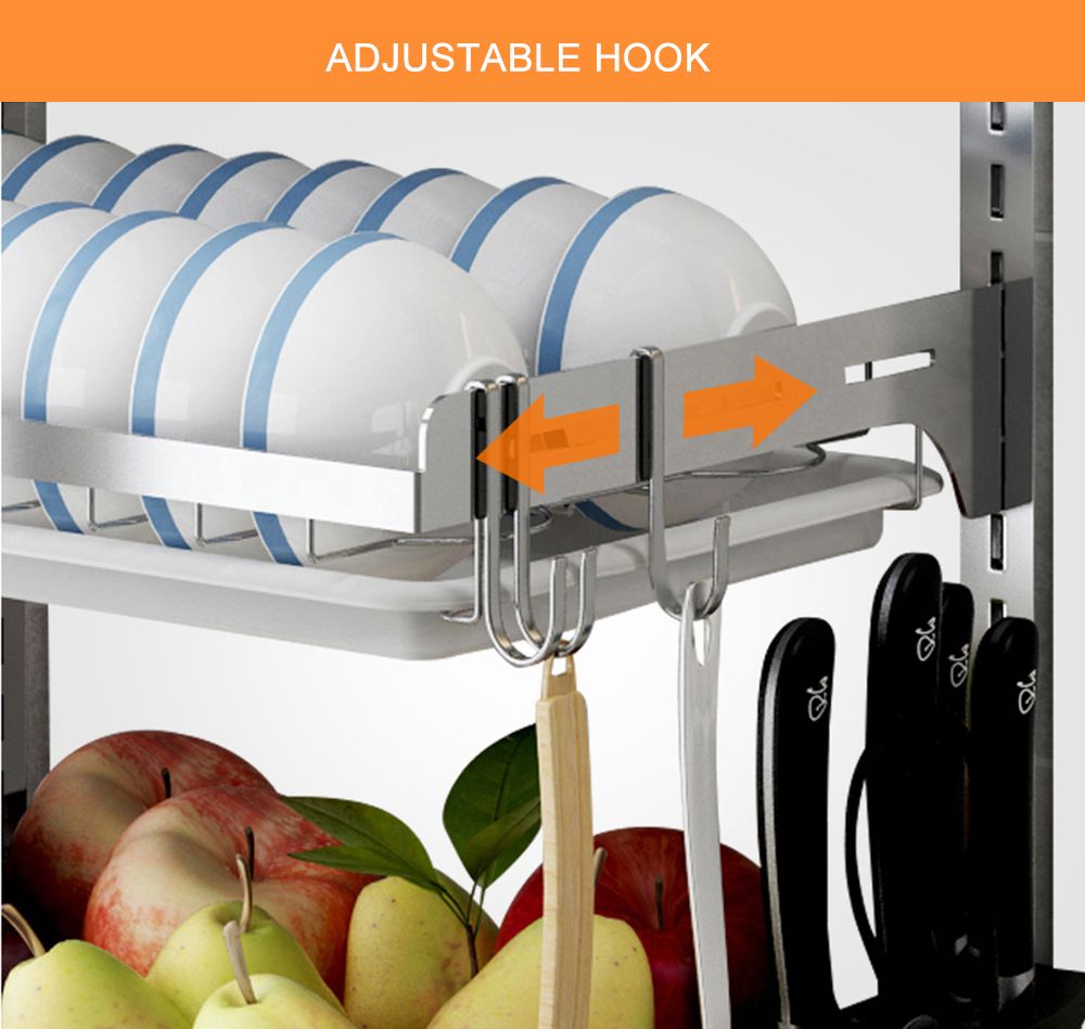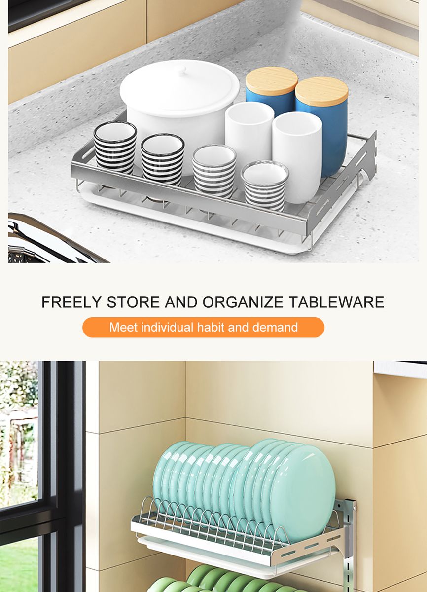 [Adjustable Dual Layer] Tier style rack features space saving characteristic. Separated dish rack with nonskid setting protects plates from sliding out. Besides, you can adjust the height of rack according to the size of tableware. You can also exchange the position of dish rack and bowl shelf depending on your taste or habit.