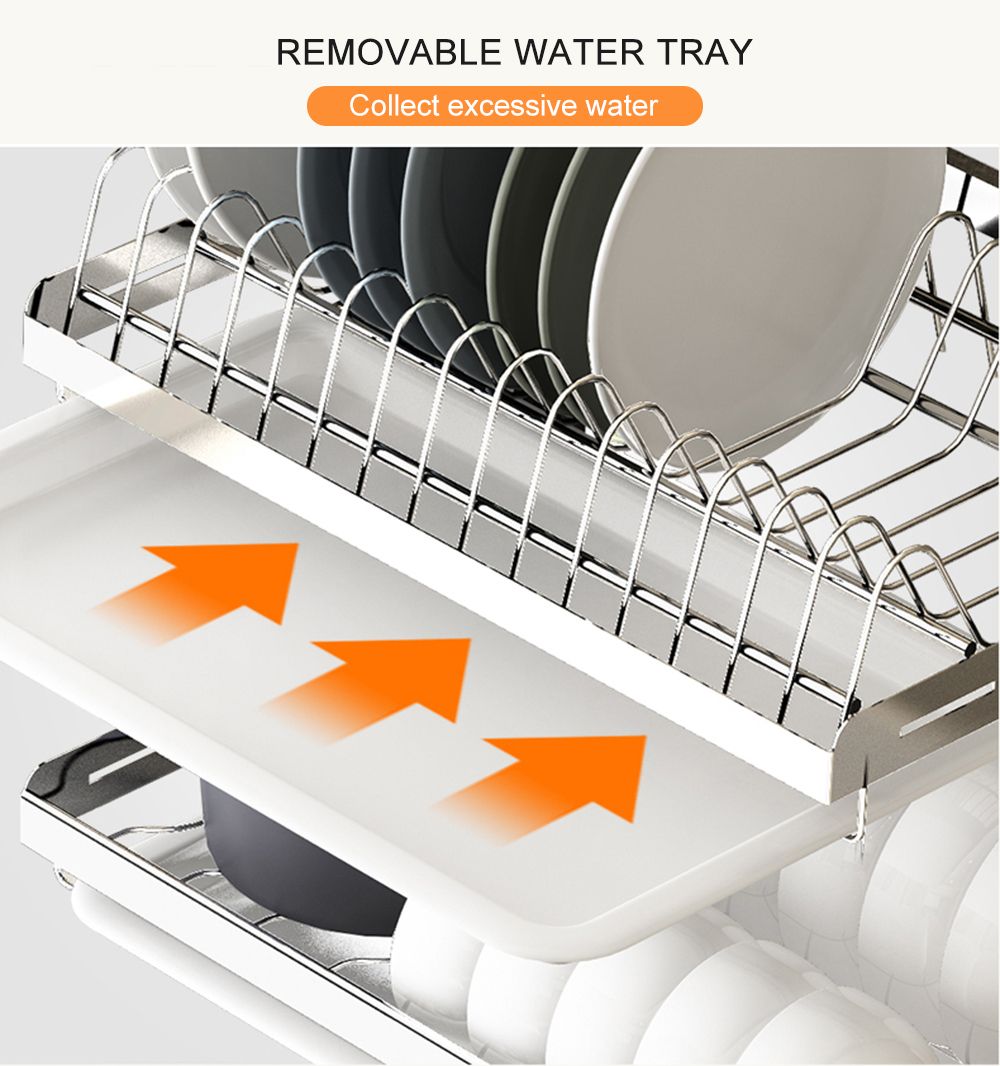 [Water Tray] There is a water tray under each rack collecting excessive water, easy to take it out for cleaning. And you don\'t need to worry that the water drips down from upper-level dish rack making lower layer or kitchen table wet.