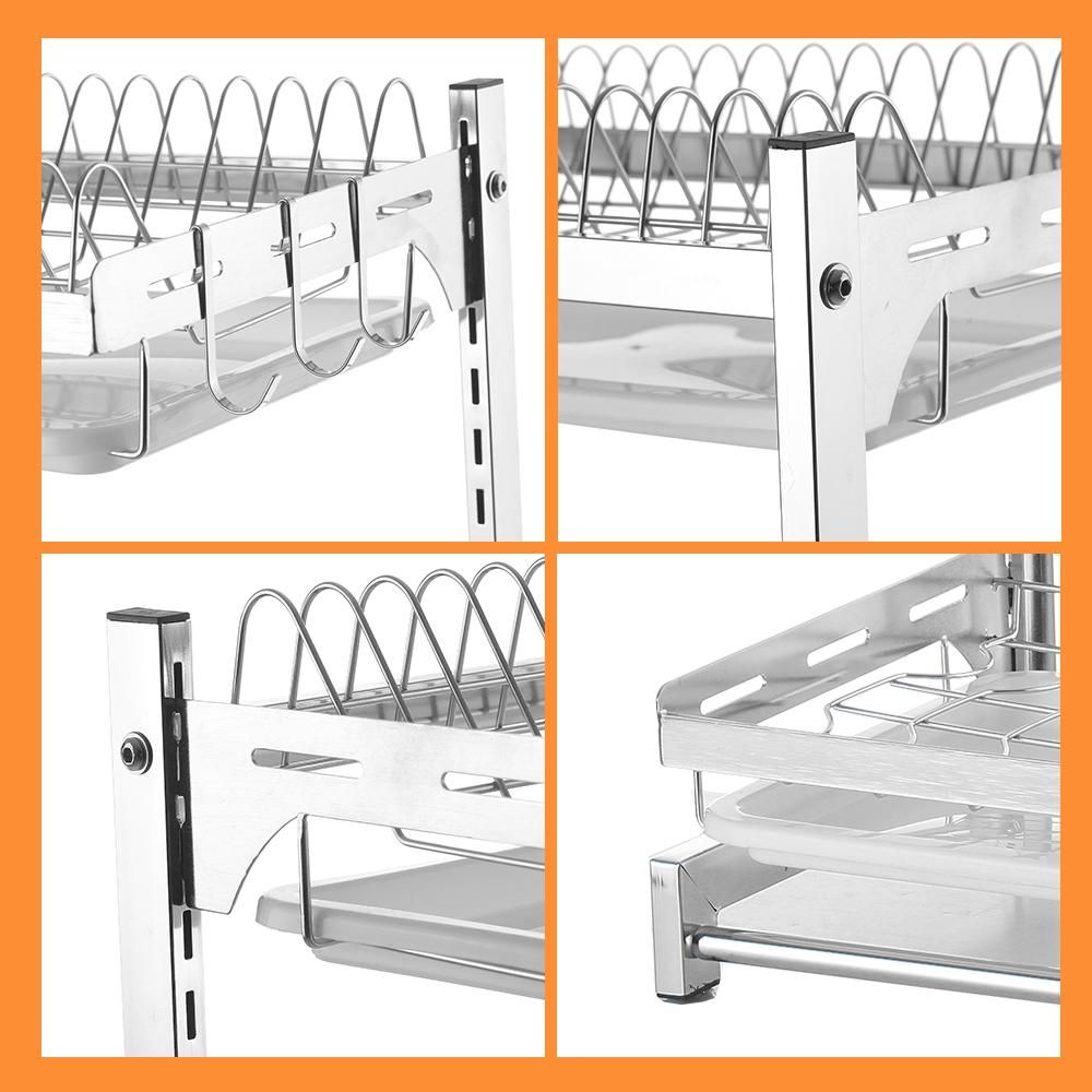 Buy 40x28x42cm 2-tier 201Stainless Steel Silver Dish Drying Rack for Kitchen Dishes Bowl Cup Dryer Drainer Holder Utensil Tableware Dinnerware Rustproof Storage Organizer with Tray in Nigeria