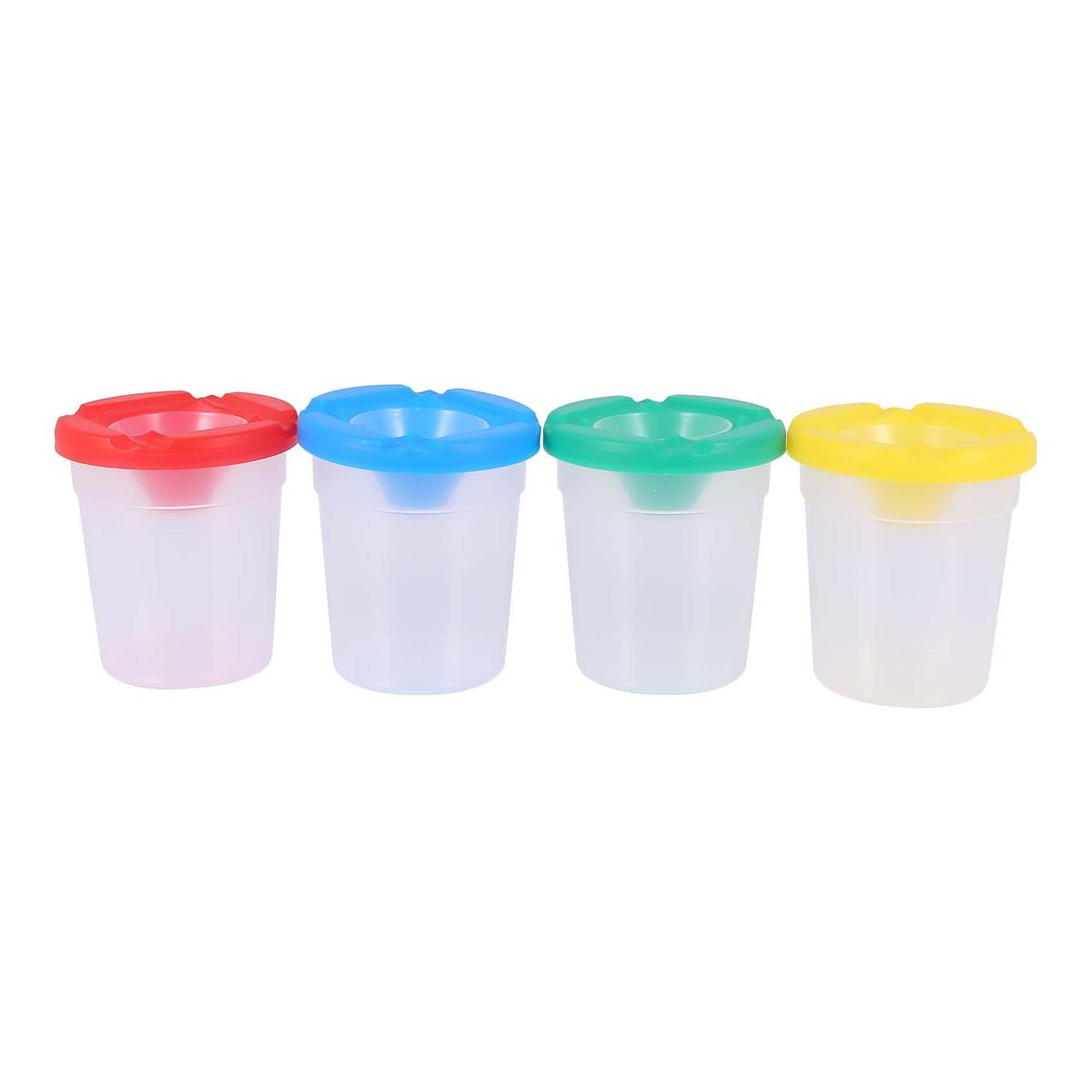42 Pcs Paint Brushes Kit,Include Paint Cups with Lids,NO SPILL PAINT CUPS: Are you still worrying about the mess for your child after painting? There are 4 PCS NO spill paint cups for kids in painting tool kit. This helps prevent the paint from drying out and messing around after painting.