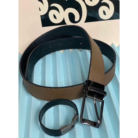 Buy 42" Reversible Belt - Black and Peanut Brown + Leather Bracelet in Nigeria